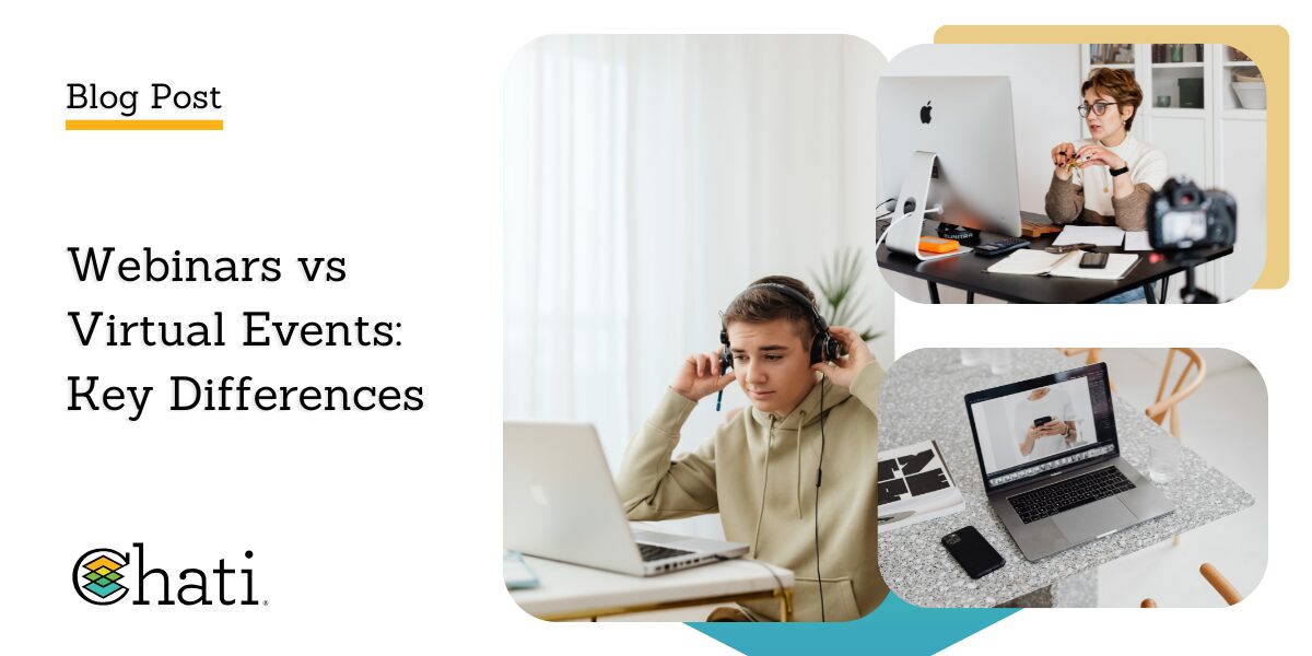Webinars and virtual events differ in scale, engagement, interactivity, and goals. Before choosing a format, organizers should evaluate objectives, audience size, and available resources. To deliver flexibility and impact, explore platforms like Chati that support both focused webinars and full-scale virtual event experiences. Please contact Chati to learn how you can produce impactful webinars or virtual events for global audiences.