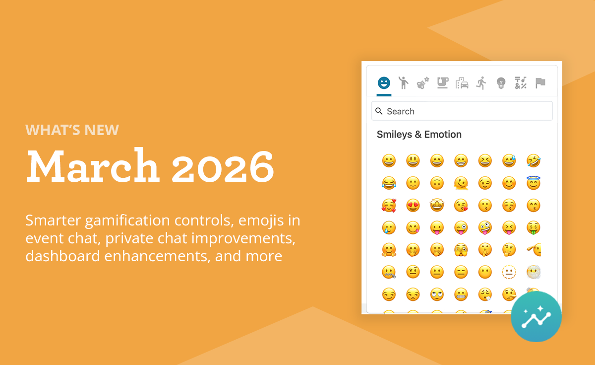 This release brings smarter gamification controls, emojis in event chat, private chat improvements, enhancements in building dashboards, and a batch of fixes that address things you've been waiting on.